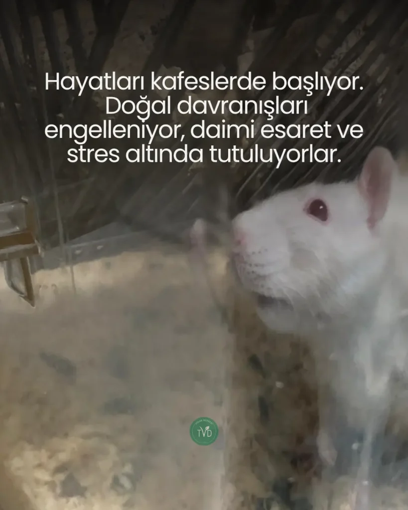 Bu merkezlerde hayvanlar birer “denek” olarak doğuyor; yaşamlarının tamamını kafeslerde, doğal davranışlarından mahrum şekilde geçiriyor ve deneylerde kullanılmak üzere sistemin içine dahil ediliyor.
